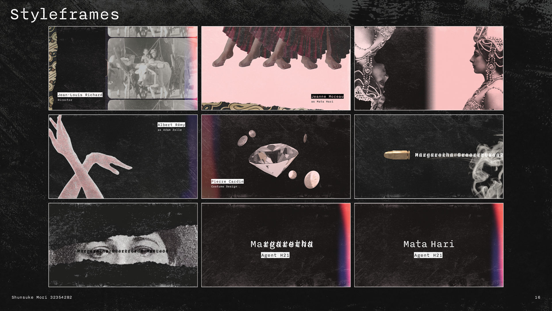 Mixing 3D and 2D animation with old live-action footage, the video attempts to express the drastic changes in Mata Hari's life and her multi-faceted personality.