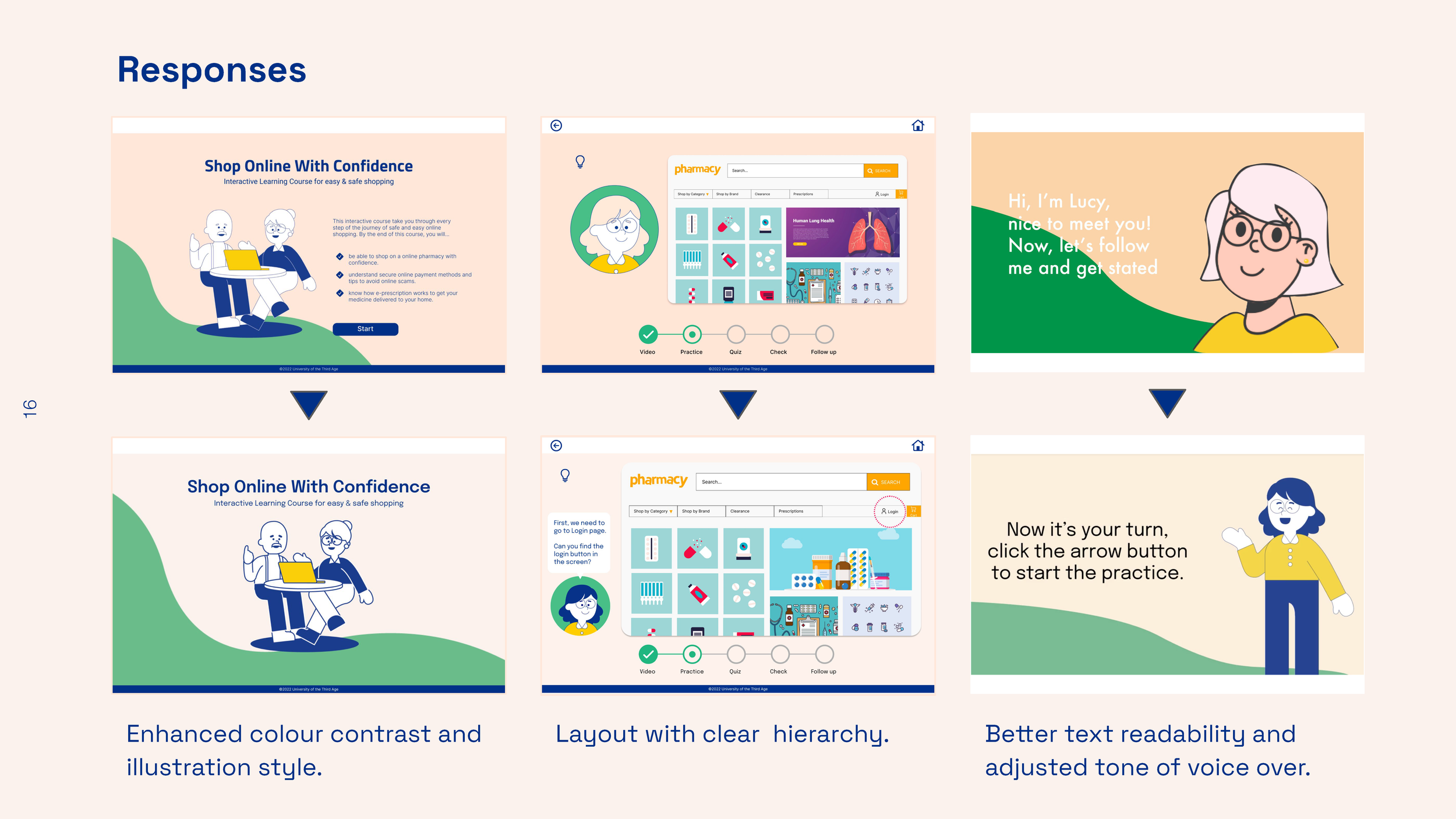 The brief was to design an online educational resource to help people learn how to use online pharmacies and make secure payments in an engaging way.